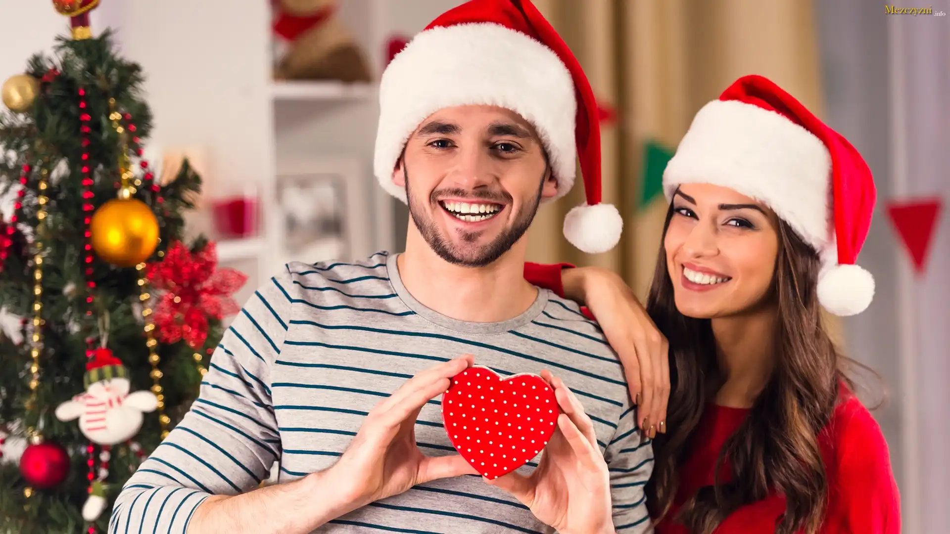 Mężczyzna, Kobieta, Serce, Czapki, Mikołaja
