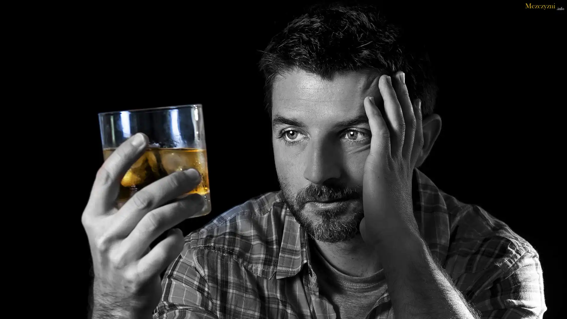 Mężczyzna, Załamany, Drink, Czarne tło