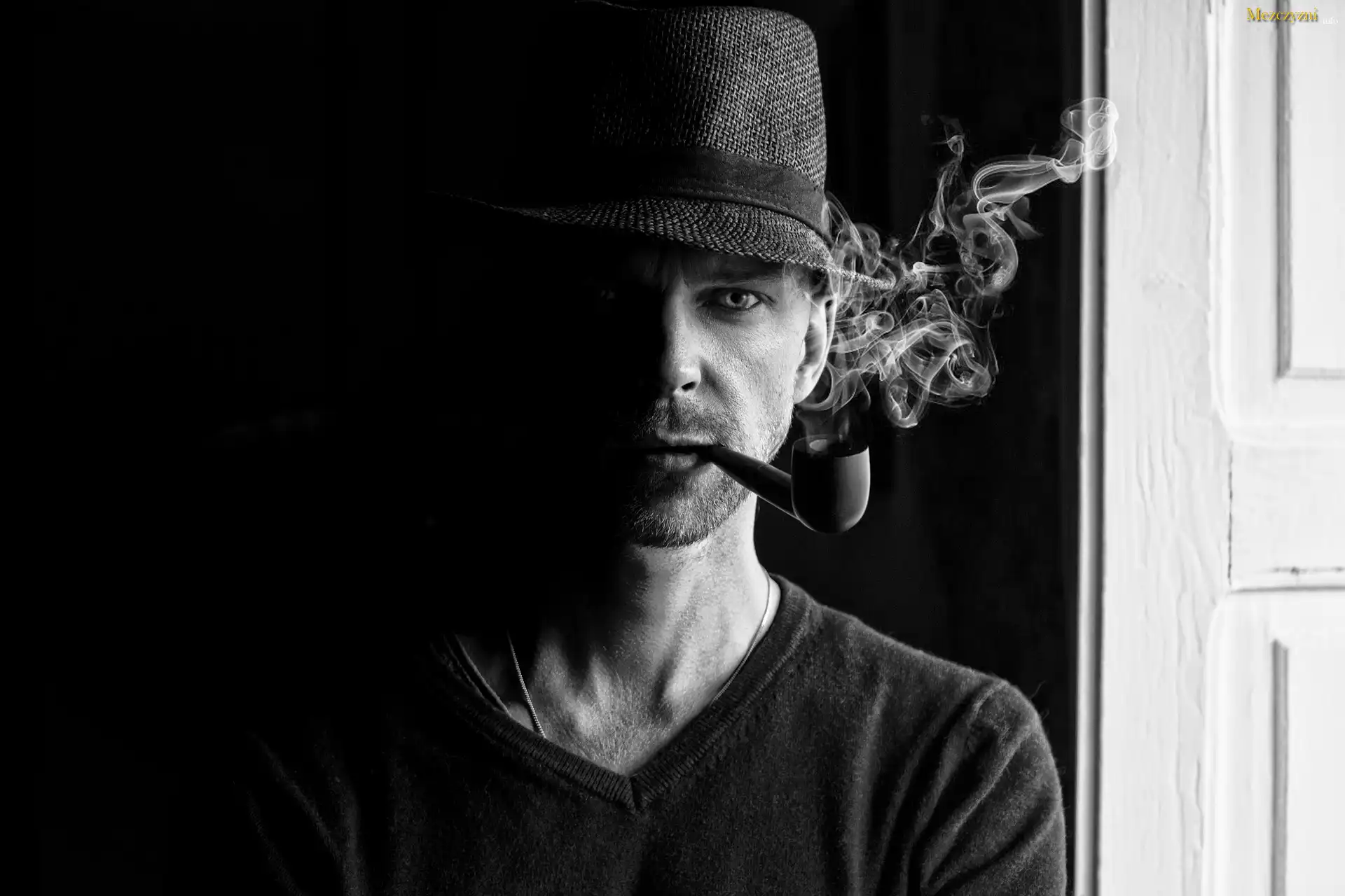 Mężczyzna, Kapelusz, Fajka, Czarno-białe