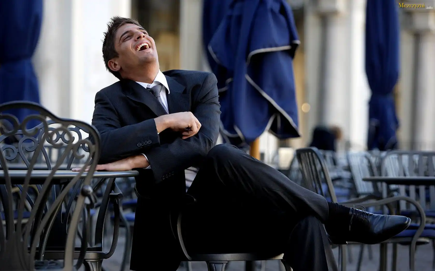 Mężczyzna, Kawiarenka, Emocje, Śmiech
