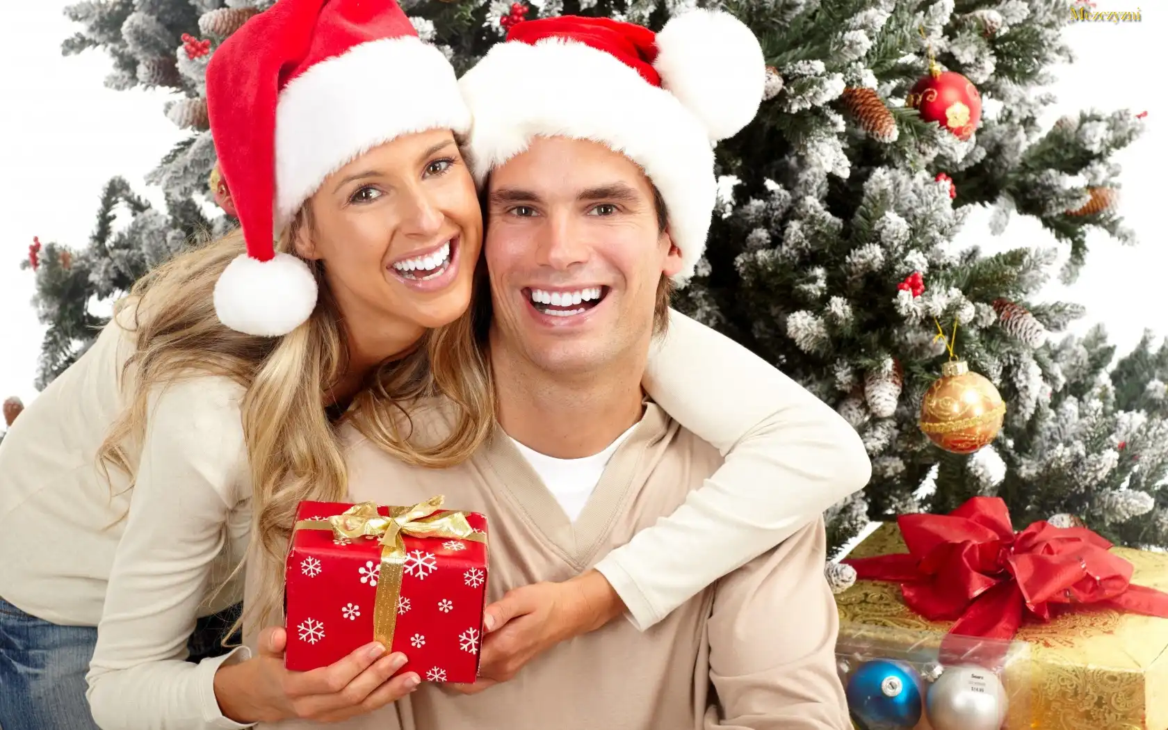 Kobieta, Mężczyzna, Radość, Prezent, Choinka, Boże, Narodzenie