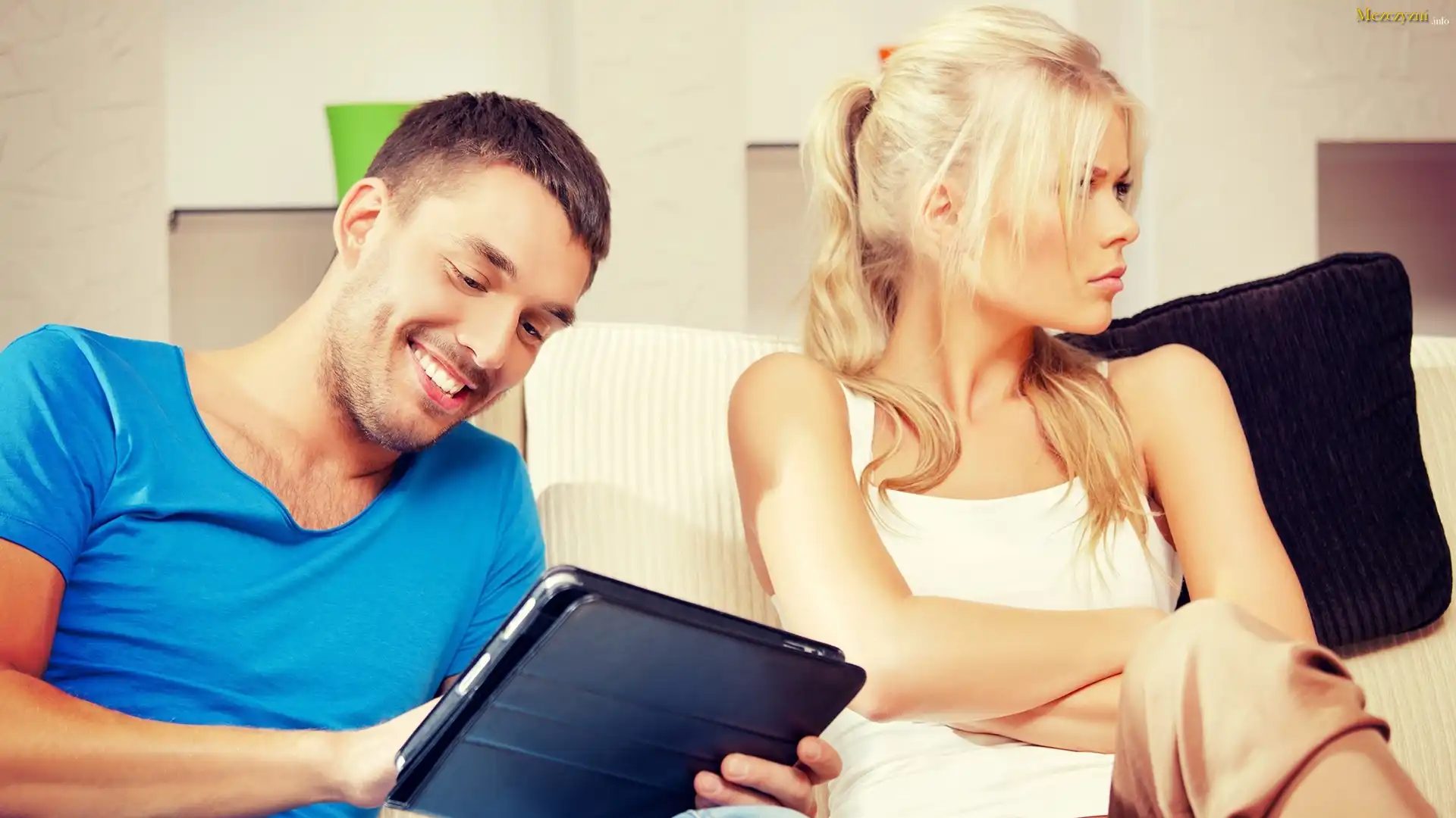 Mężczyzna, Tablet, Obrażona, Kobieta