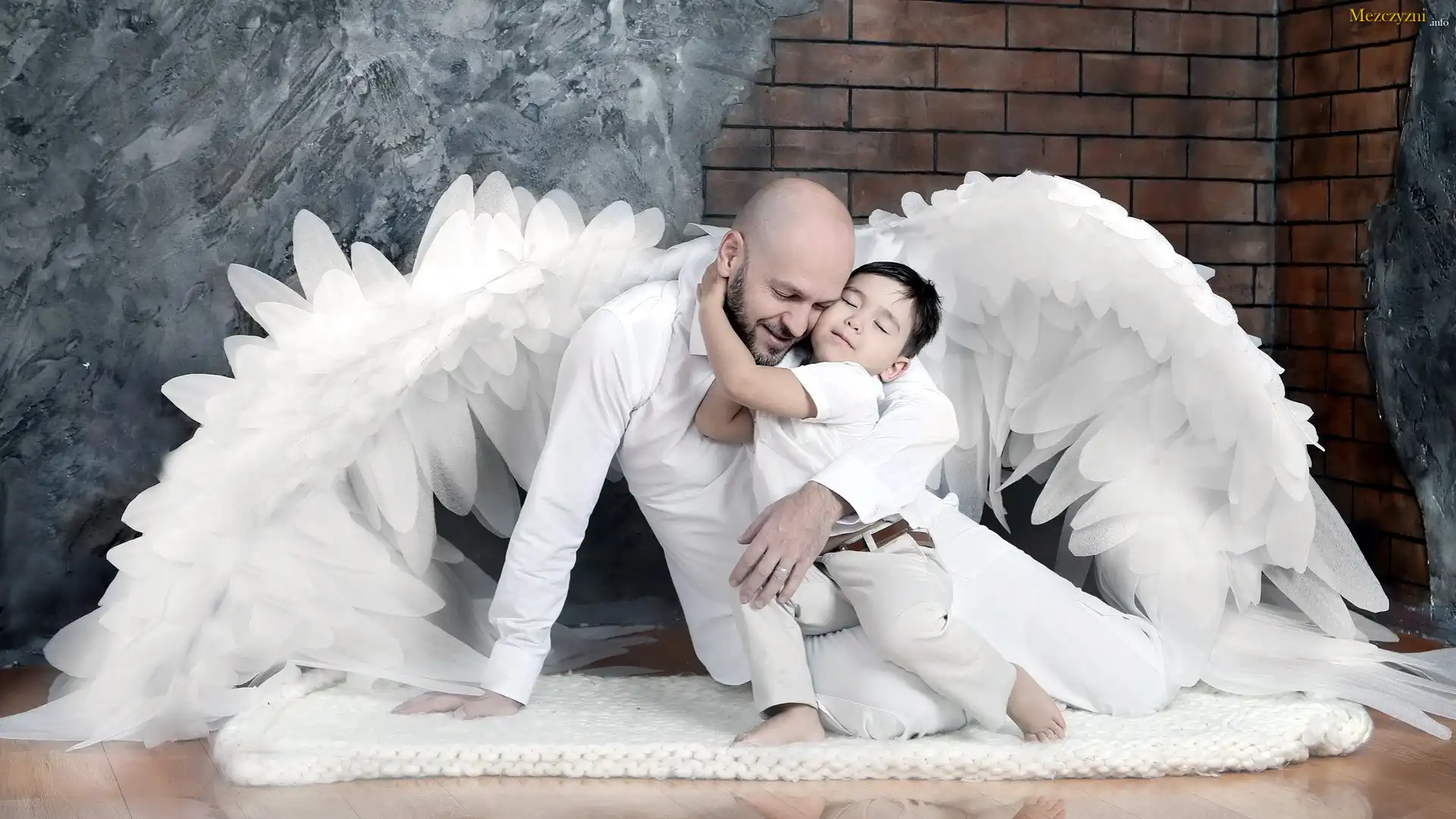 Ojciec, Mężczyzna, Dziecko, Chłopczyk, Anioł, Opiekun, Skrzydła