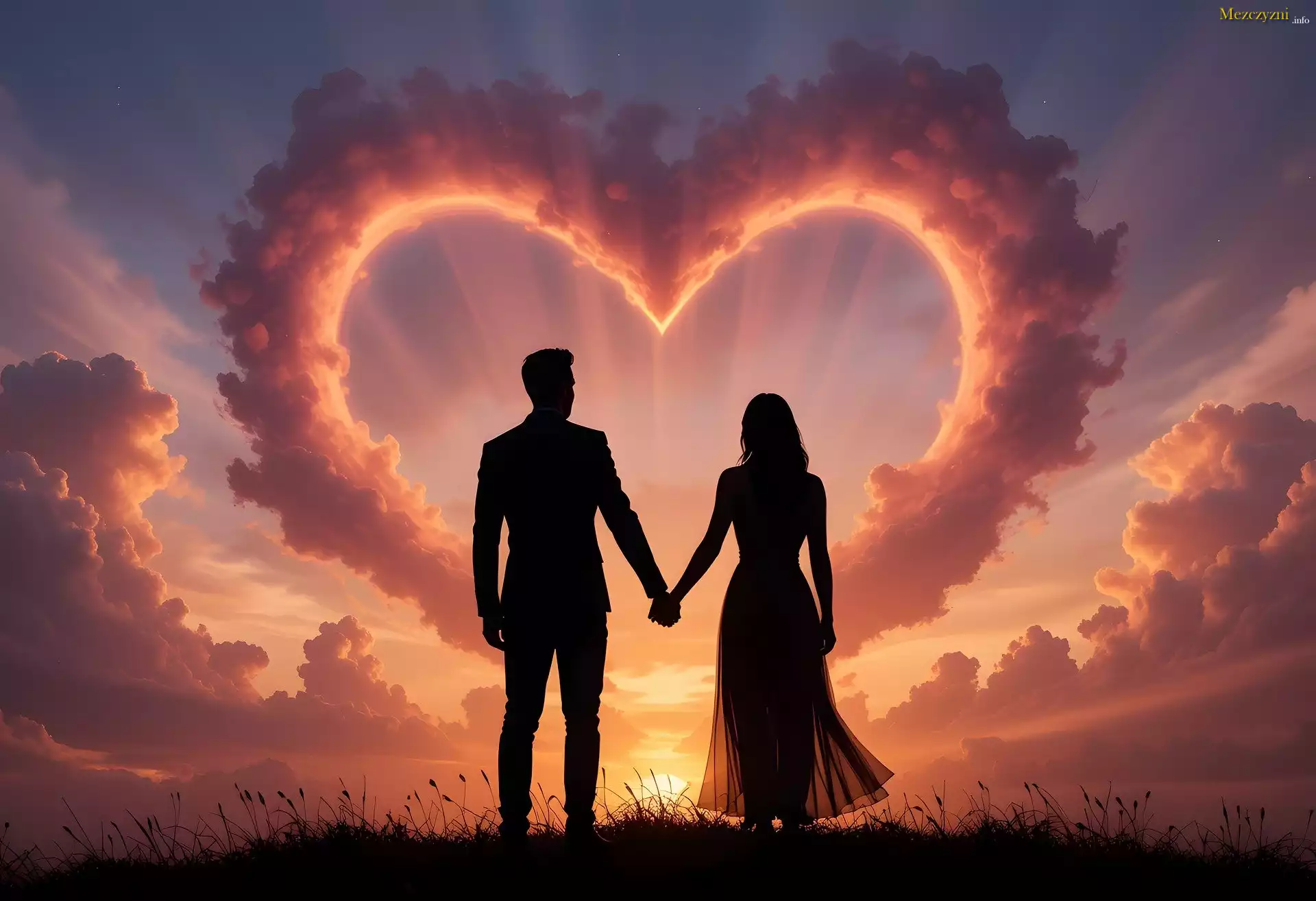 Kobieta, Mężczyzna, Serce, Chmury, Grafika