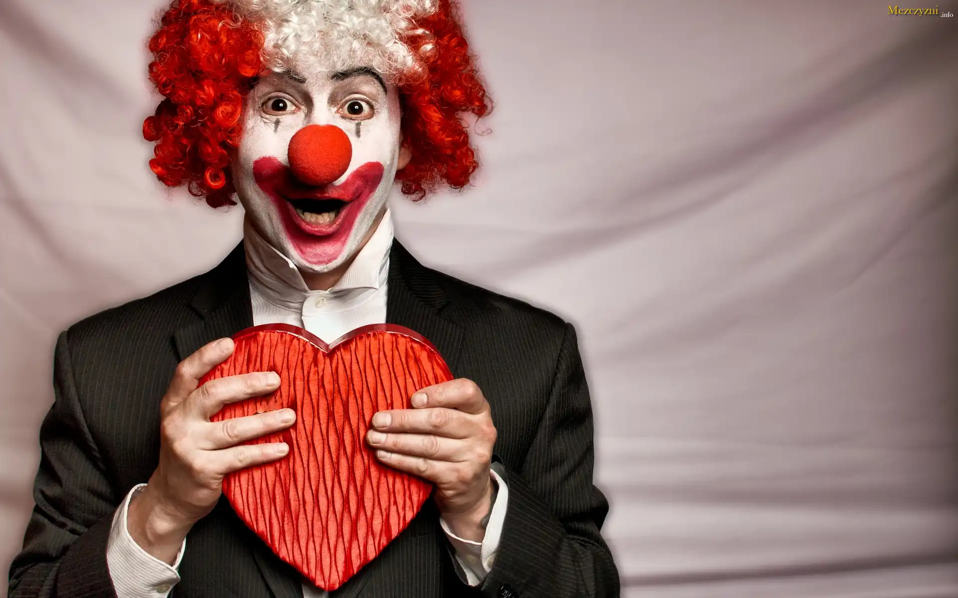 Klaun, Mężczyzna, Peruka, Czerwony, Nos, Dłonie, Czerwone, Serce