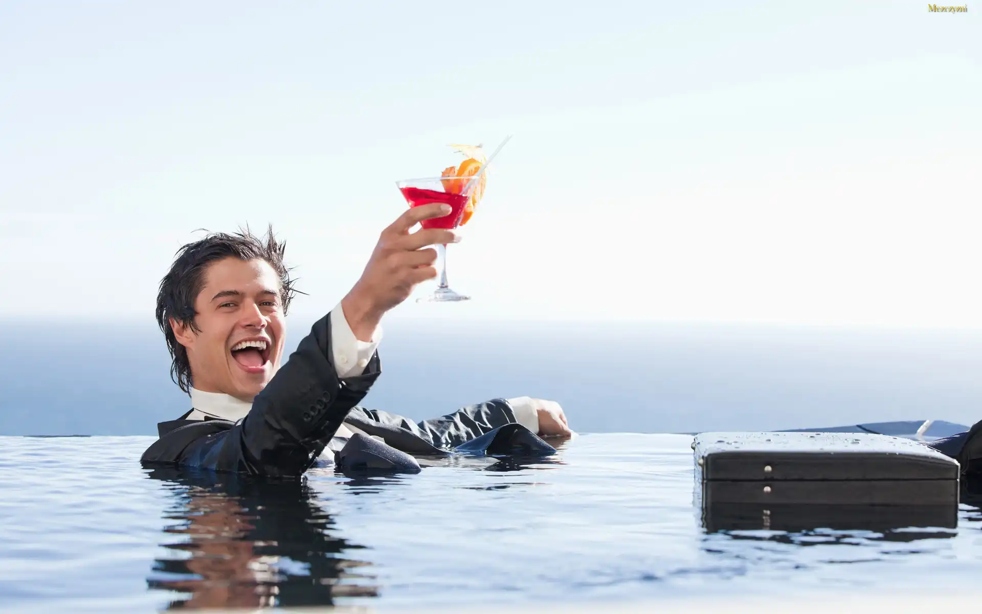 Mężczyzna, Drink, Teczka, Woda