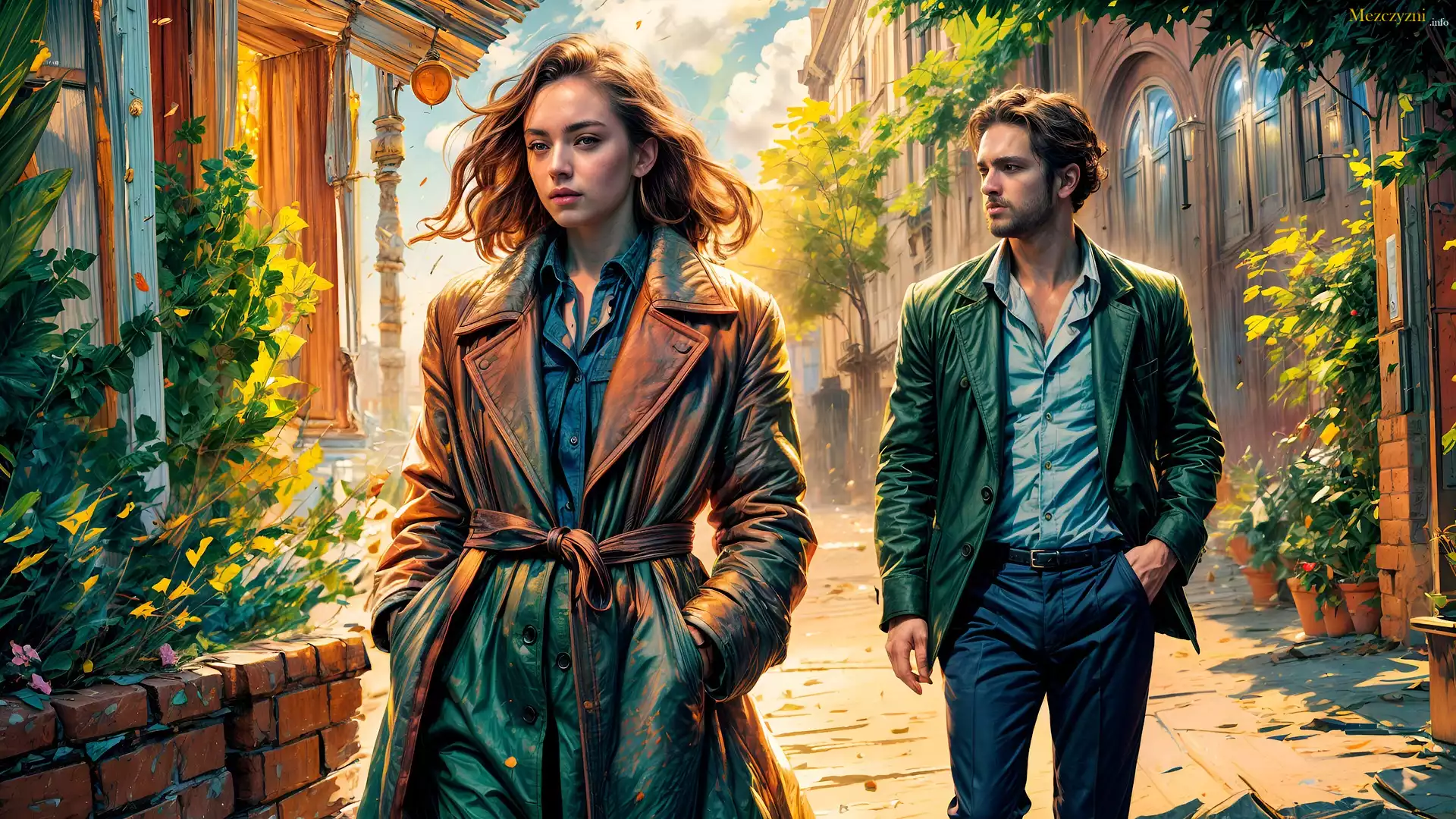 Kobieta, Skórzany, Płaszcz, Mężczyzna, Para, Ulica