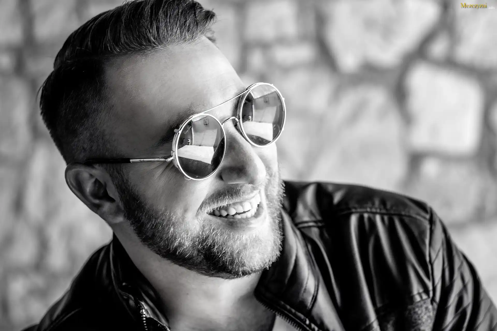 Mężczyzna, Uśmiechnięty, Okulary, Zarost, Kurtka