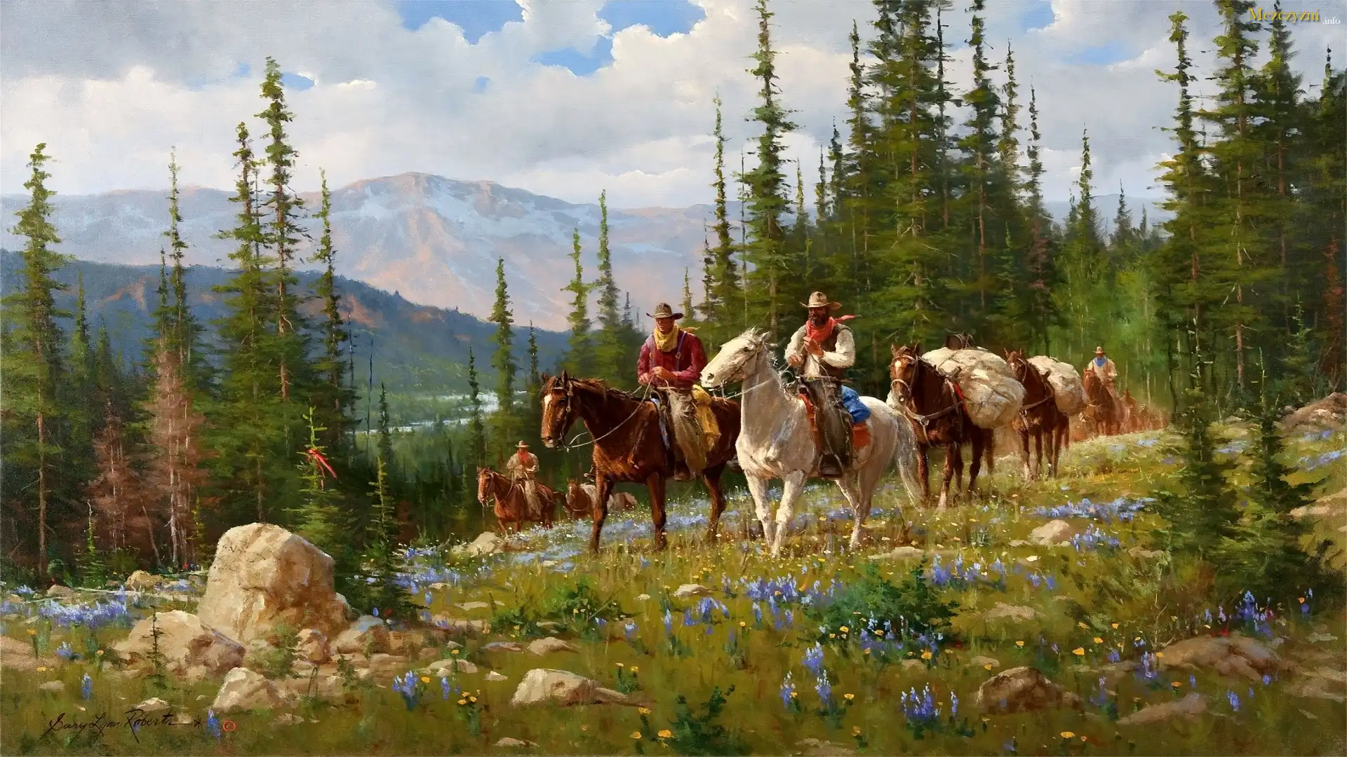 Mężczyzni, Konie, Las, Góry