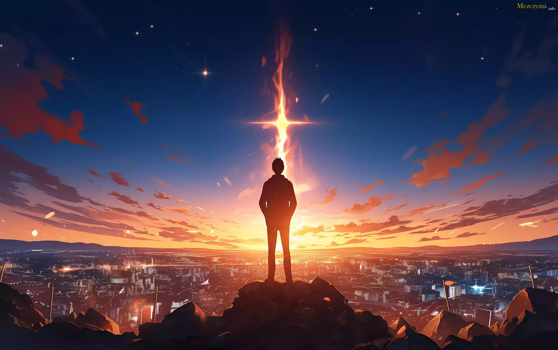 Zachód słońca, Mężczyzna, Miasto, Grafika 2D