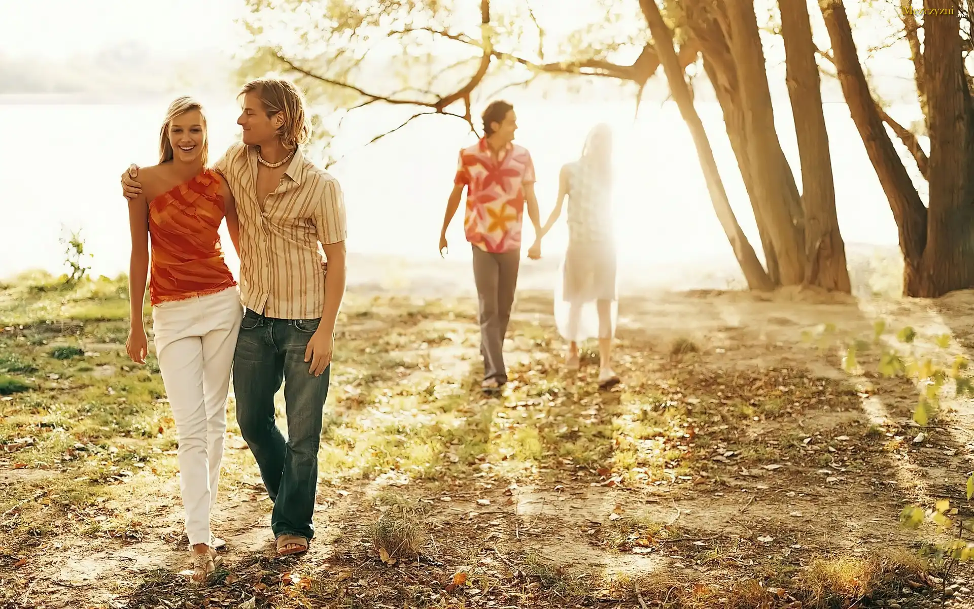 Miłość, Spacer, Zakochane, Pary, Drzewa