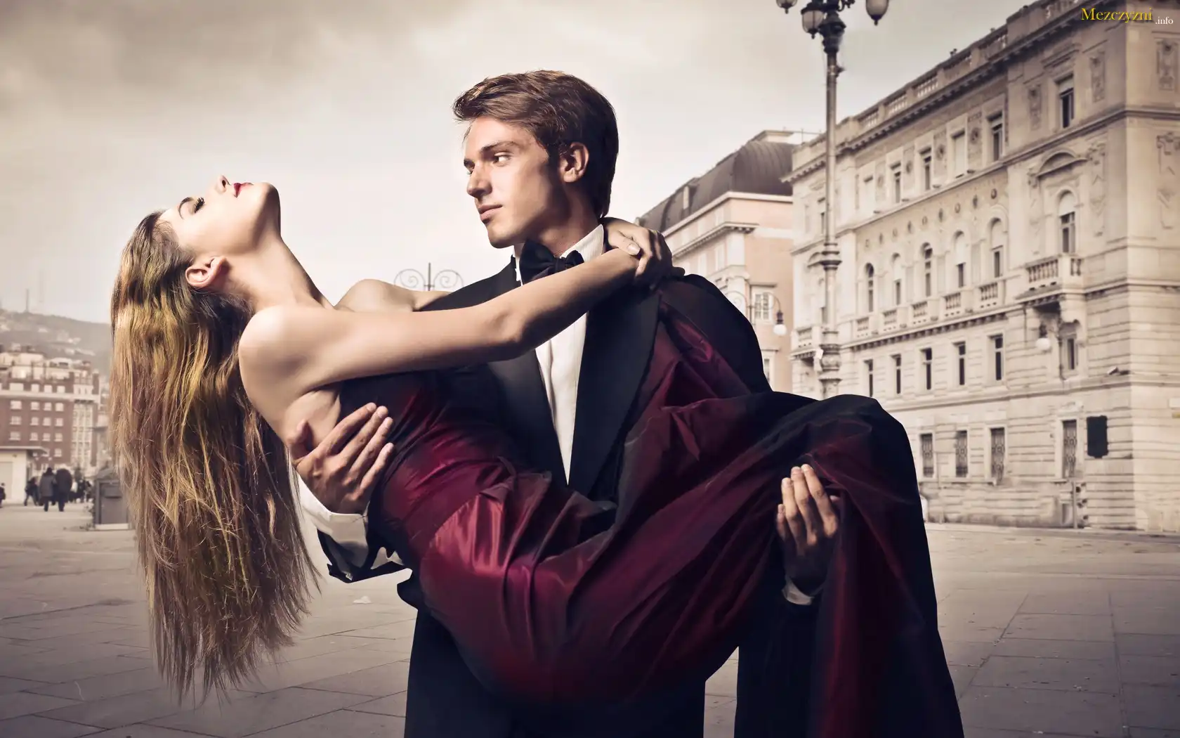 Para, Miłość, Ulica, Bordowa, Sukienka, Garnitur, Muszka, Ręce
