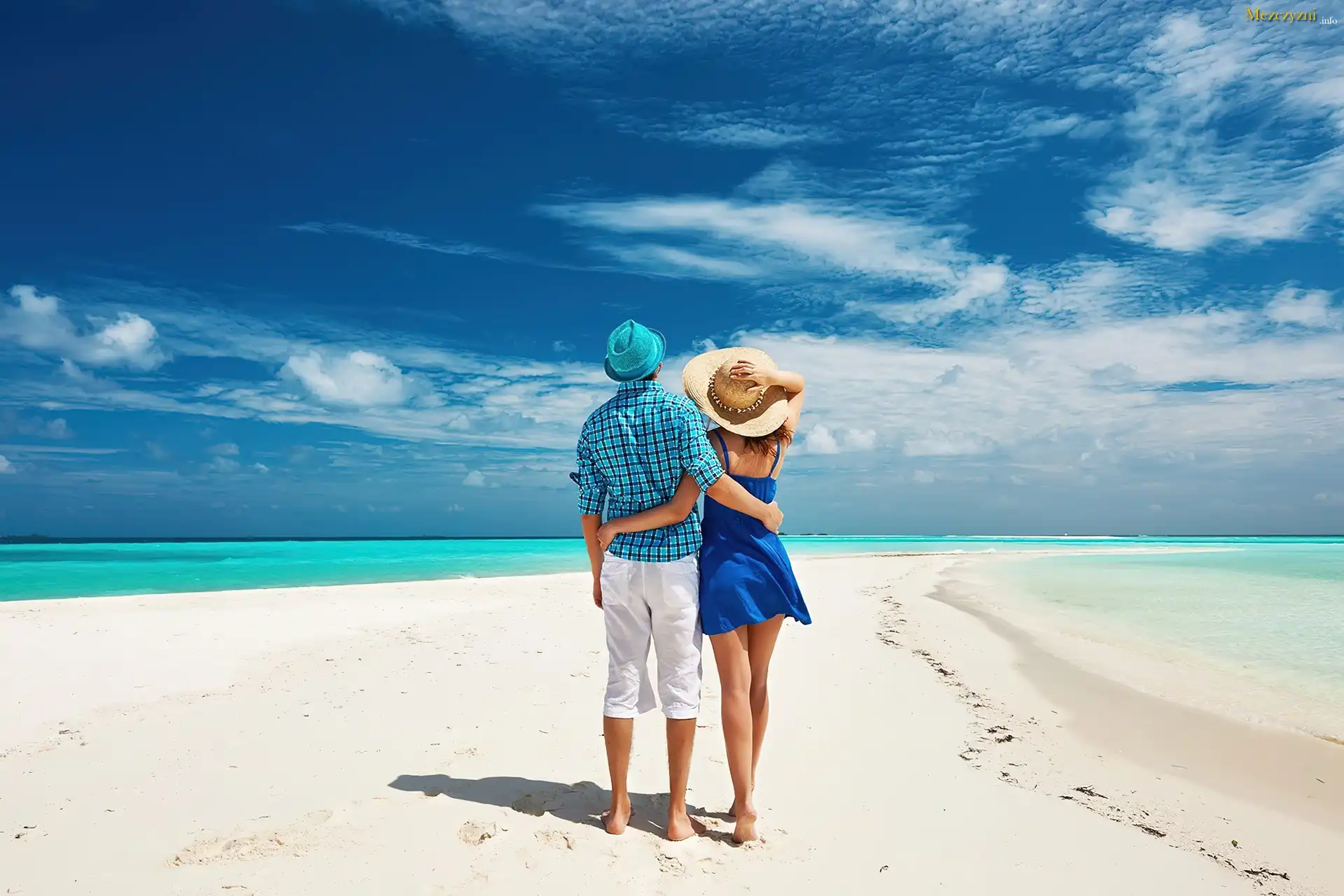 Morze, Plaża, Wakacje, Kobieta, Kapelusz, Mężczyzna