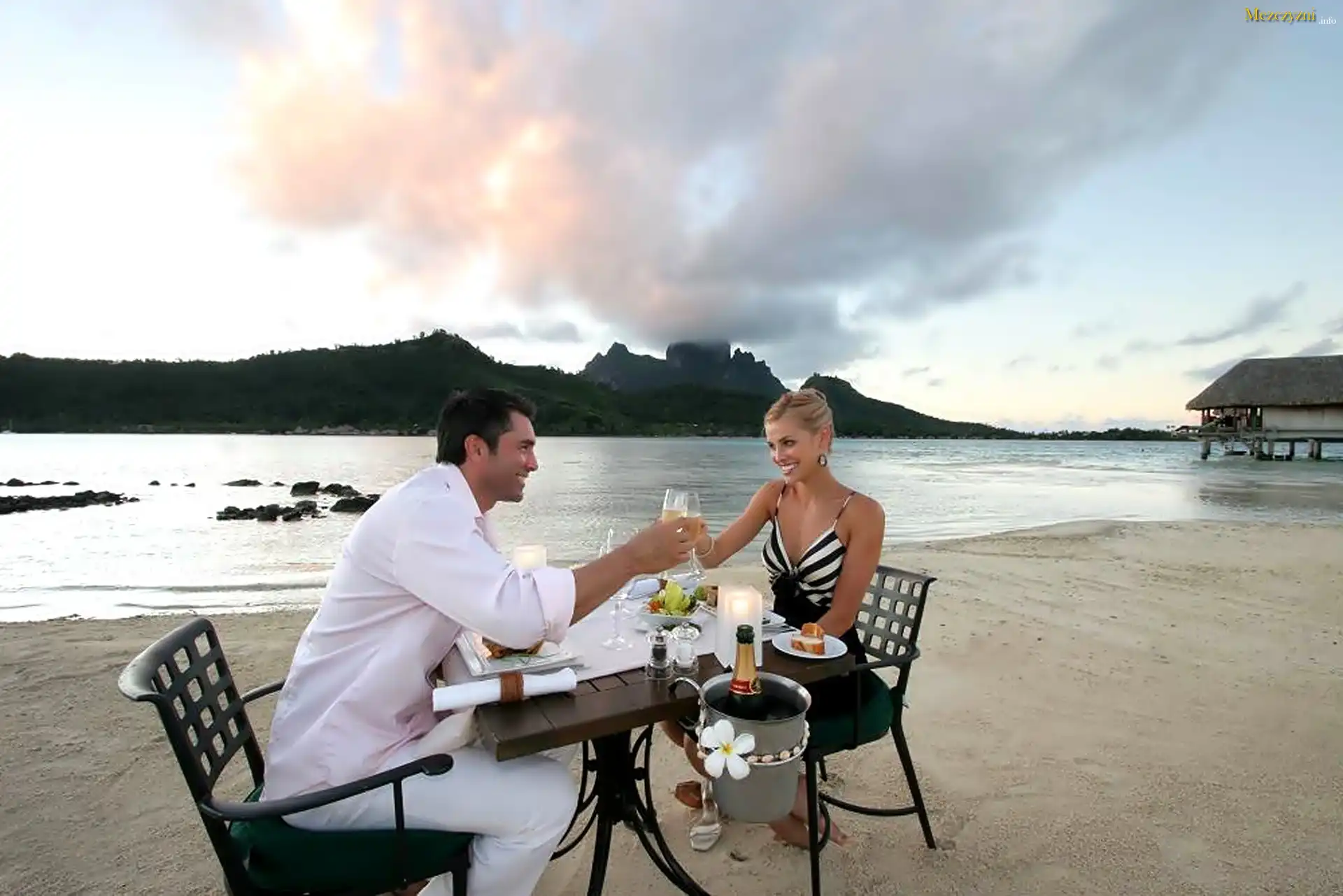 Morze, Plaża, Kobieta, Mężczyzna, Szampan