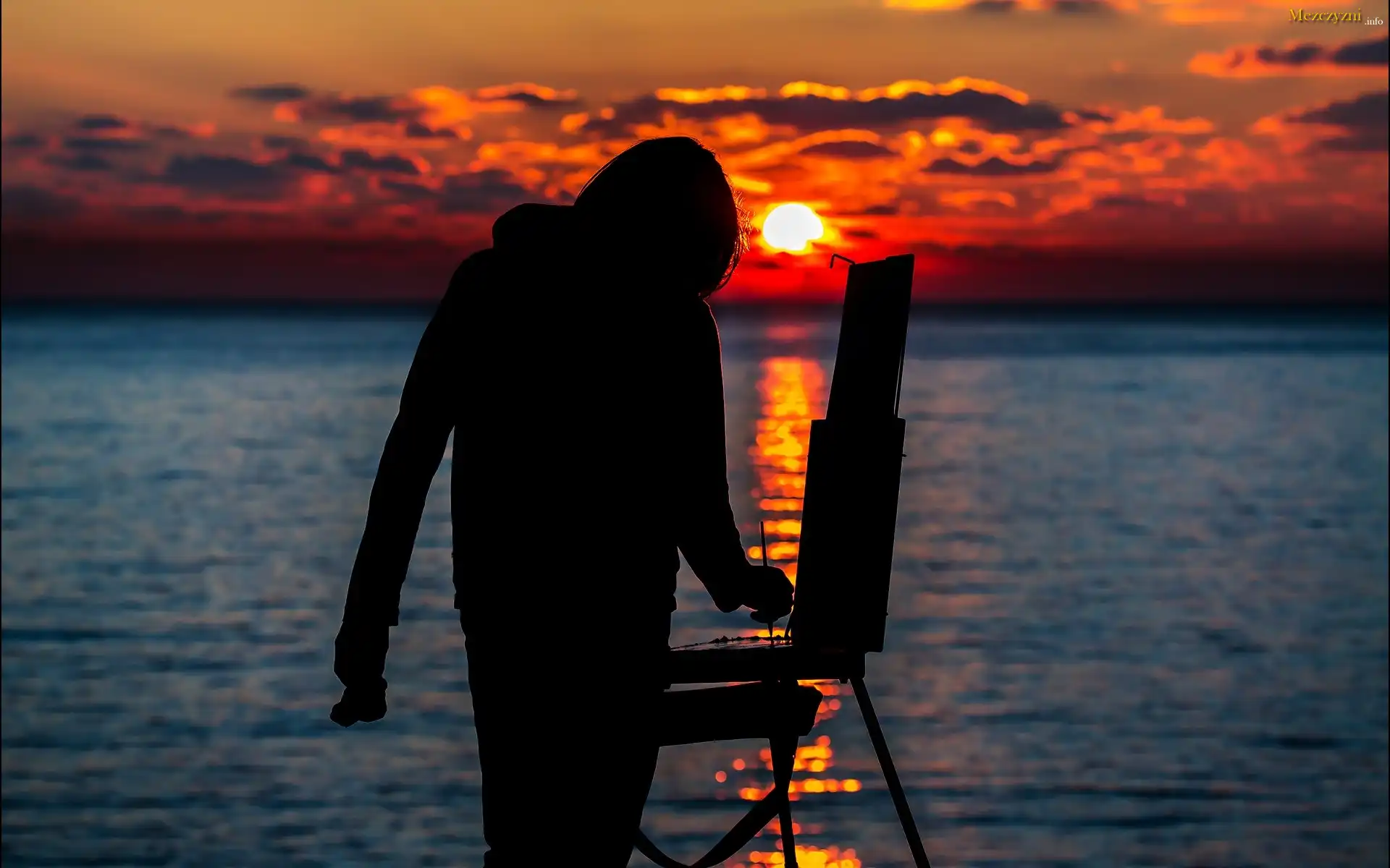 Morze, Zachód, Słońca, Malarz
