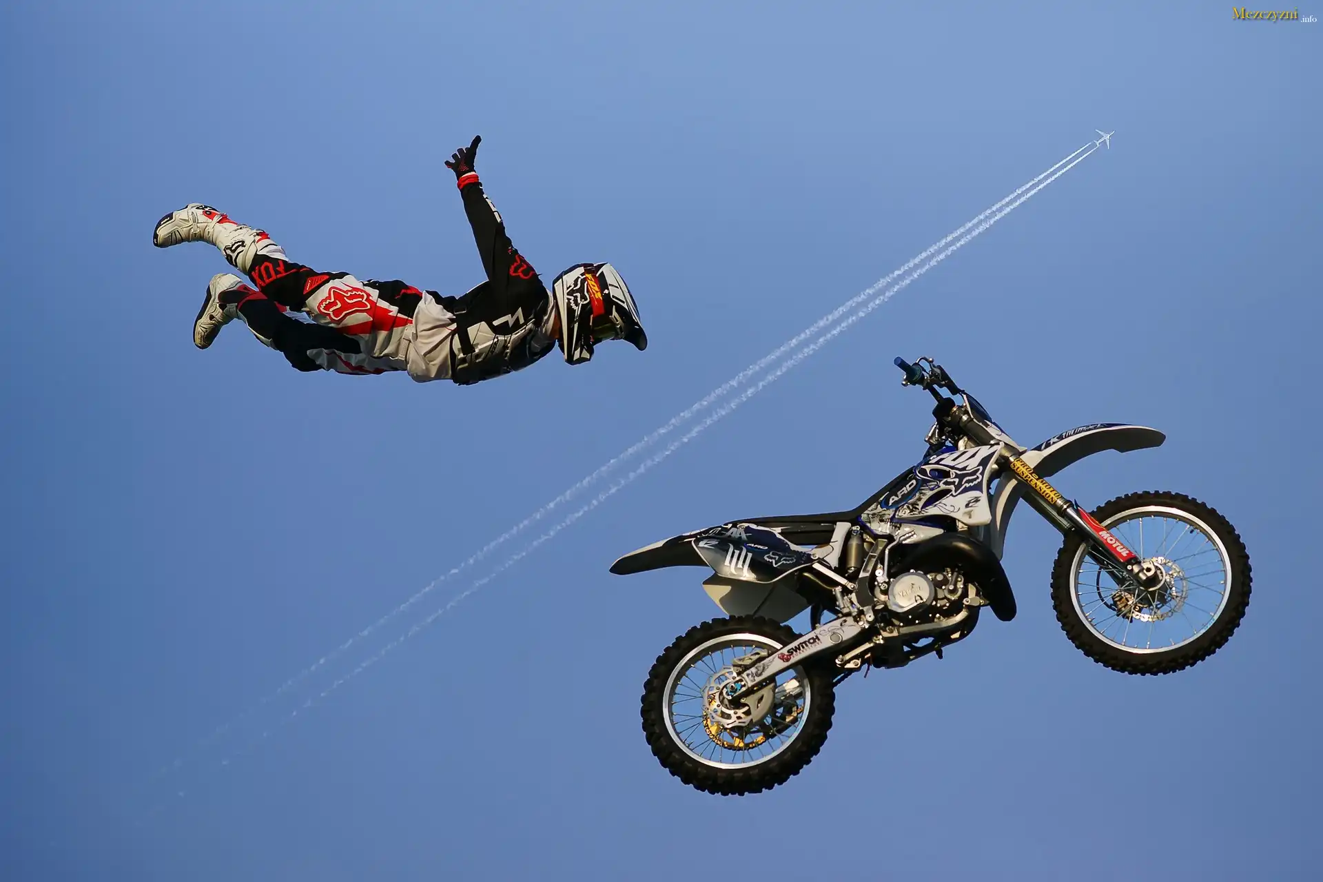 Niebo, Motocykl, Akrobacja, Mężczyzna, Samolot, Cross
