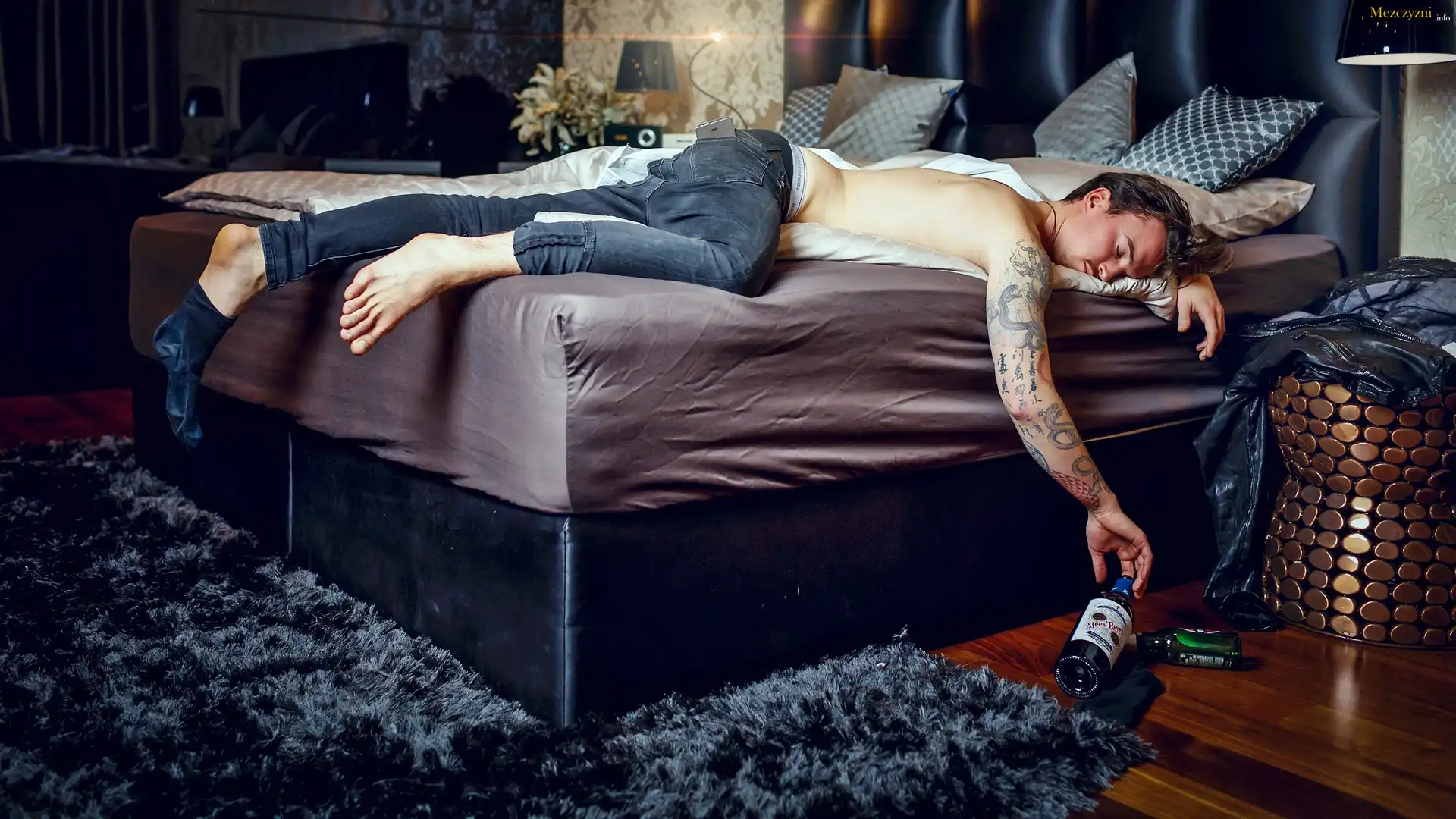Śpiący, Mężczyzna, Tatuaż, Łóżko, Sen