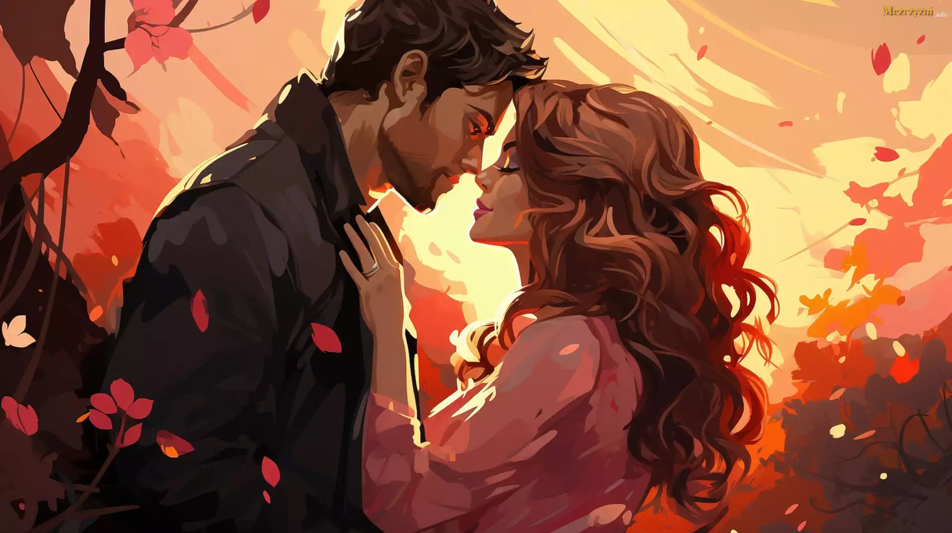 Jesień, Kobieta, Mężczyzna, Para, Zakochani, Grafika
