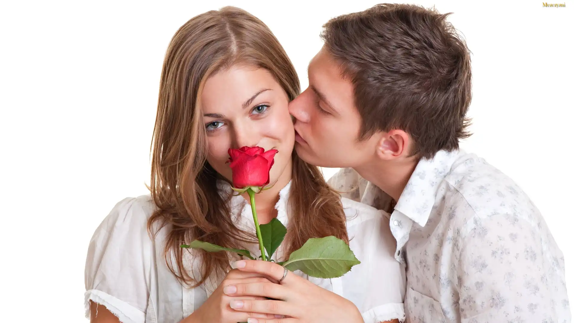 Para, Kobieta, Mężczyzna, Czerwona, Róża, Pocałunek