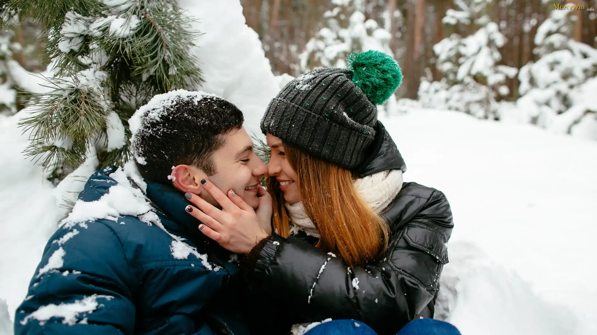 Para, Zakochani, Kobieta, Mężczyzna, Zima, Uśmiech