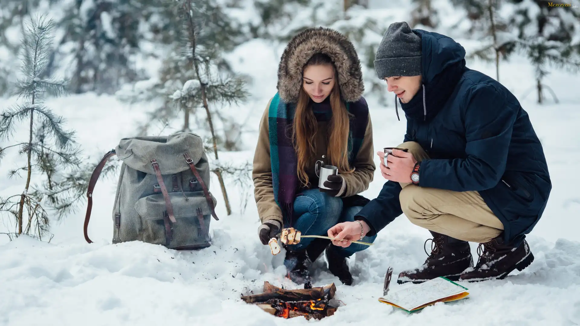 Para, Kobieta, Mężczyzna, Zima, Ognisko