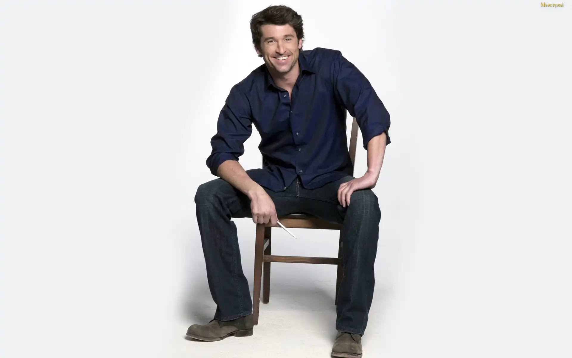 Patrick Dempsey, Aktor, Krzesło, Niebieska, Koszula
