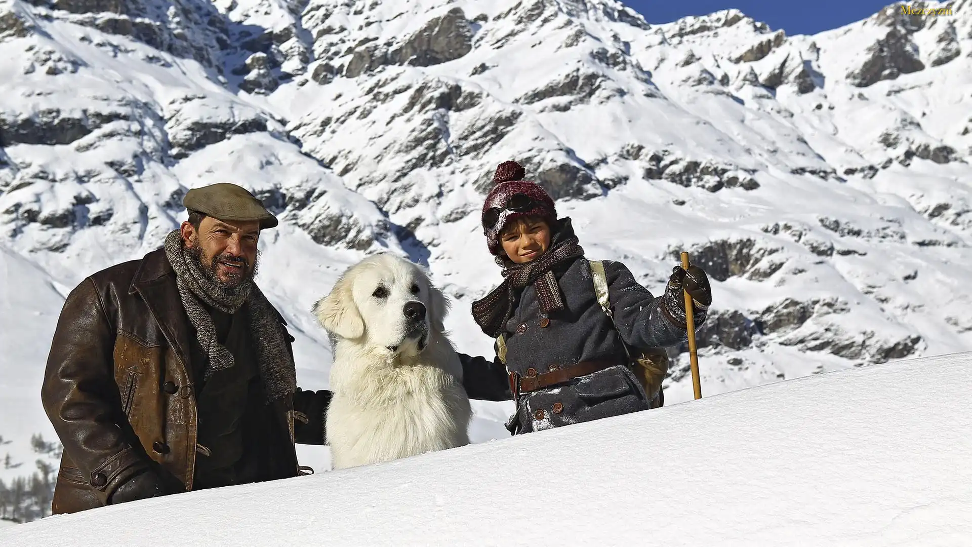 Film, Bella i Sebastian, Pirenejski pies górski, Góry, Alpy, Zima Dziecko, Mężczyzna