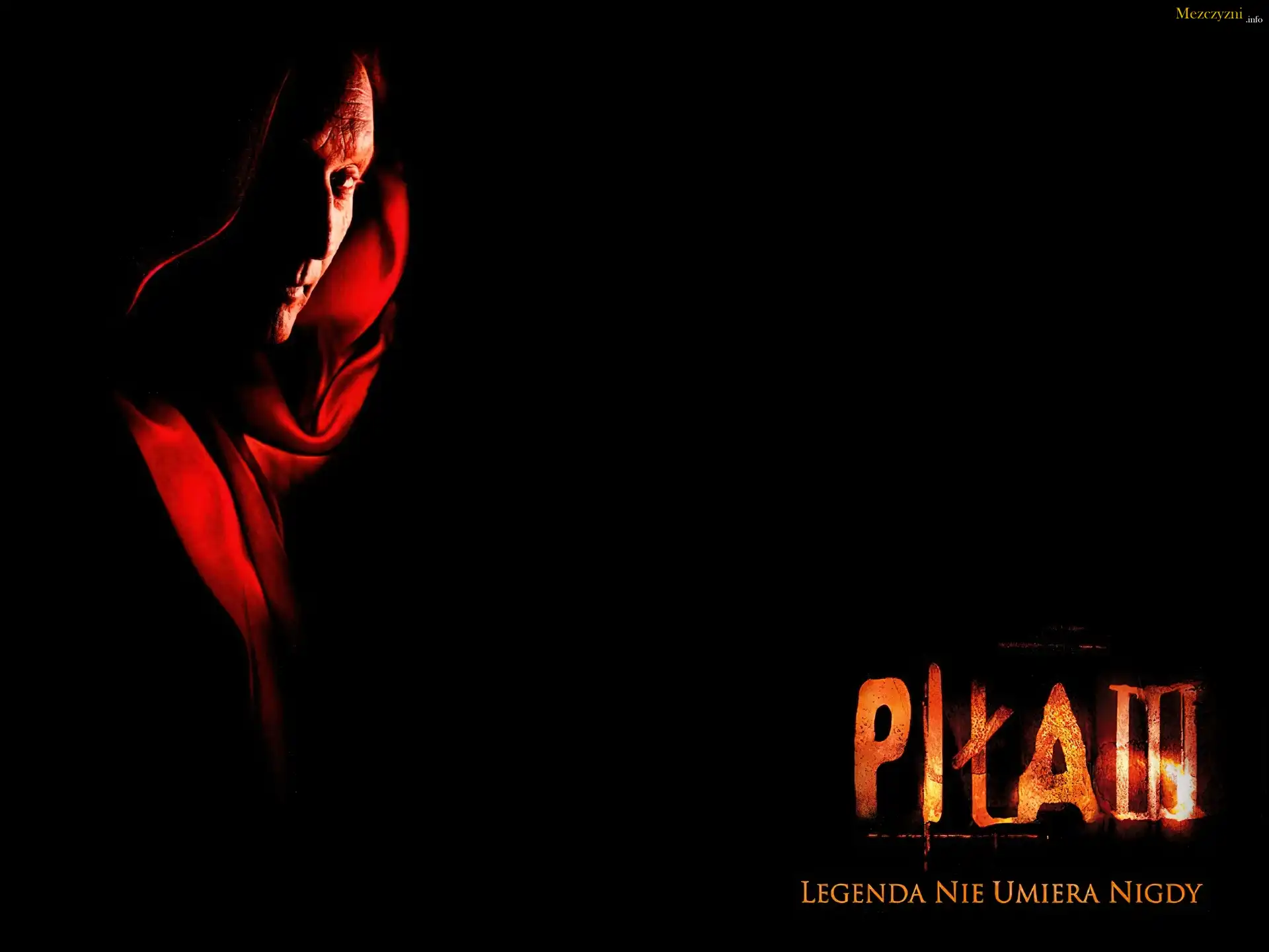 Piła 4, głowa, bandaż, napis, Tobin Bell Piła 3, Tobin Bell, czerwona, szata