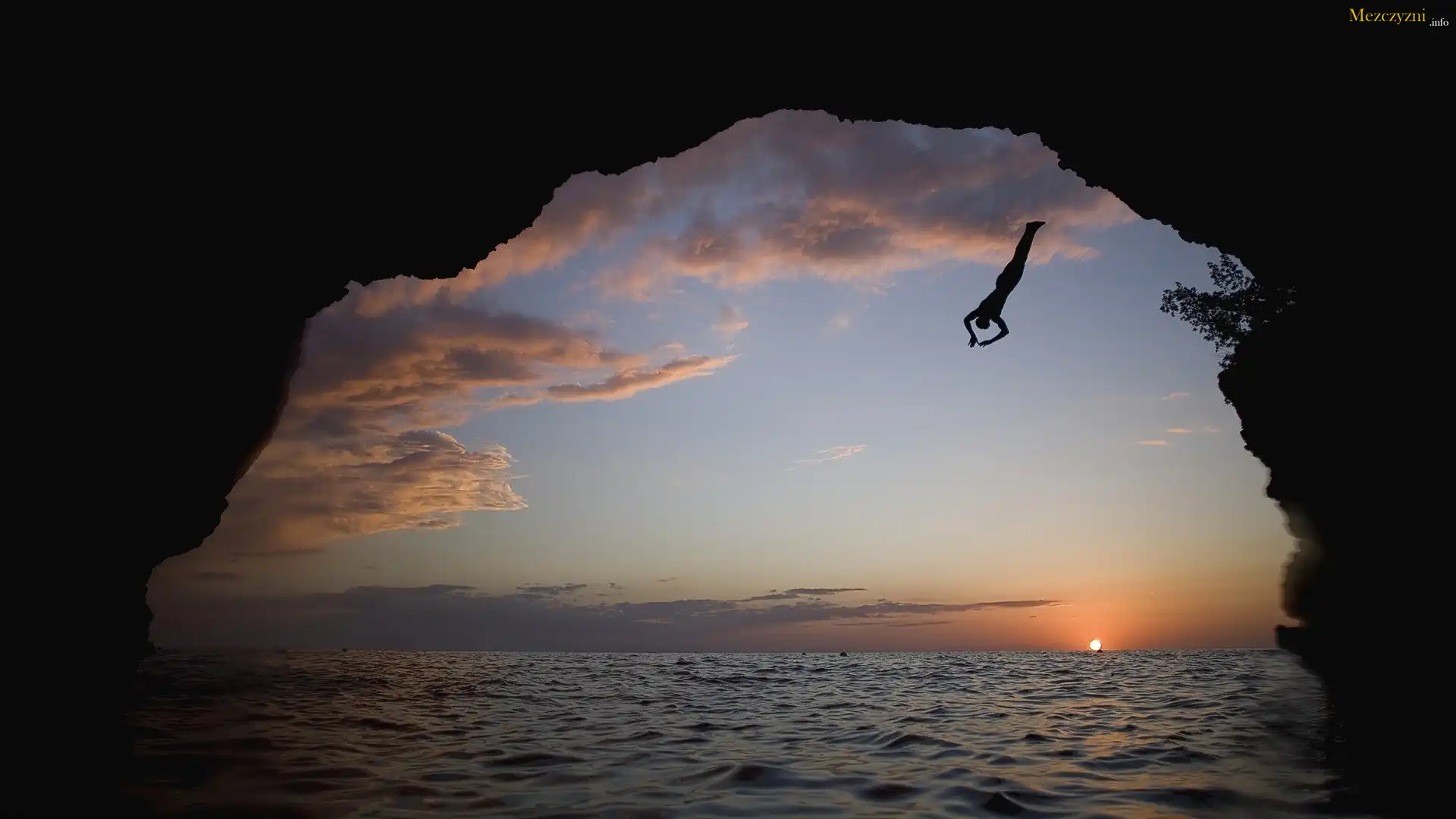 Morze, Skała, Zachód, Słońca, Skok, Do, Wody