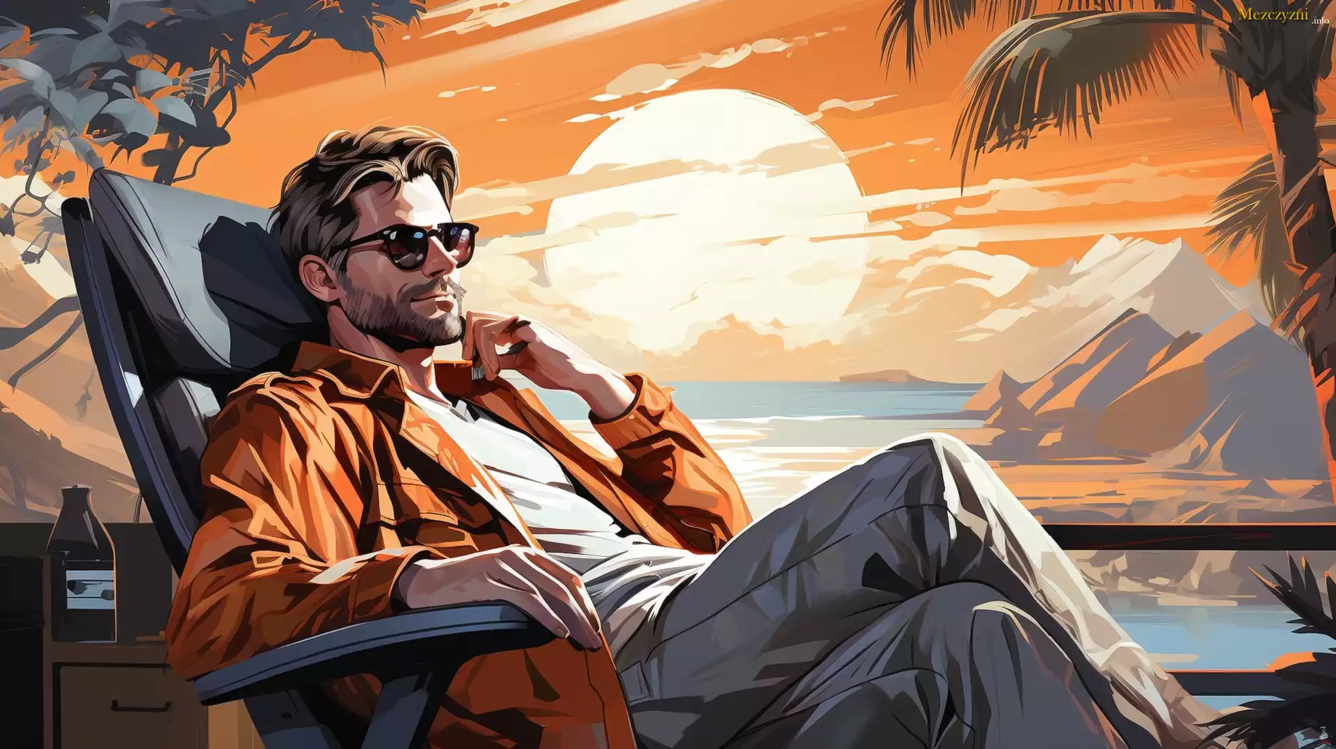 Mężczyzna, Leżak, Zachód słońca, Góry, 2D