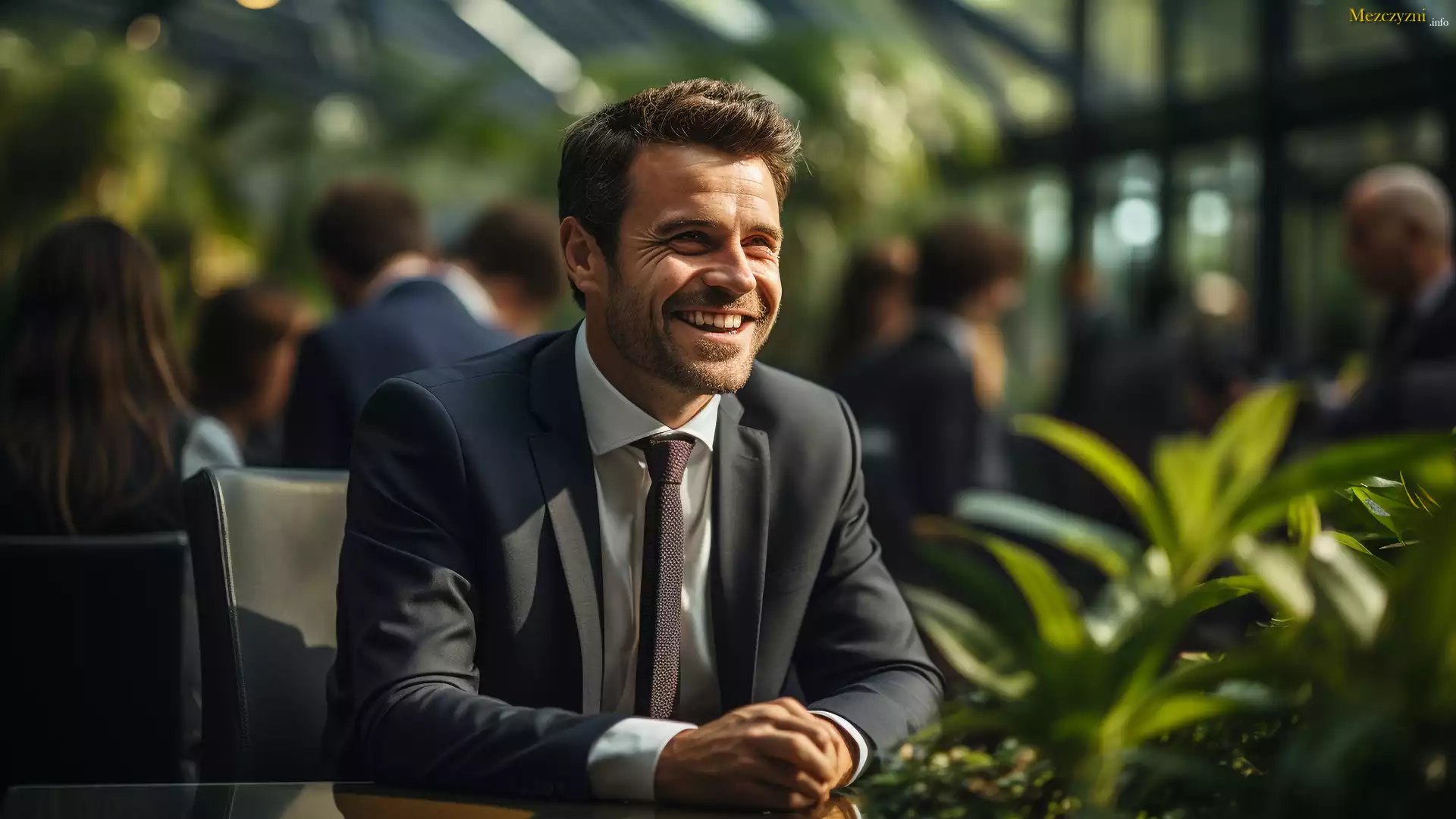 Uśmiechnięty, Mężczyzna, Garnitur, Stolik