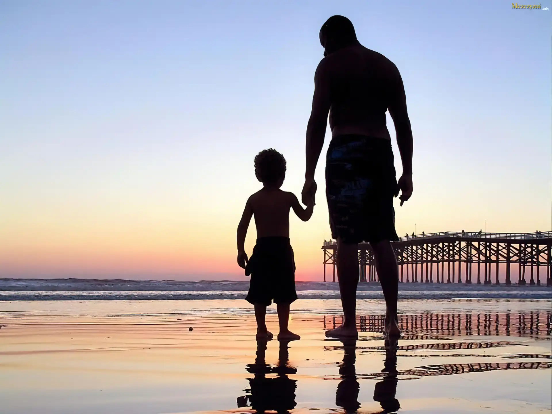 Syn, Ojciec, Morze, Zachód Słońca