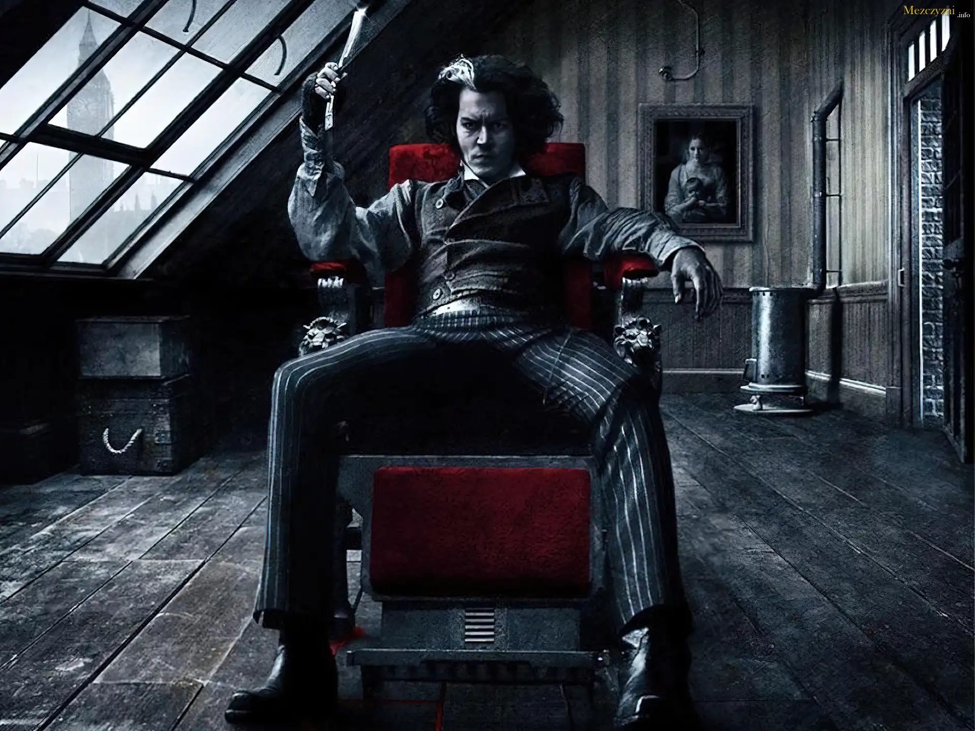 Sweeney Todd, Johnny Depp, poddasze, pokój, siedzi, fotel