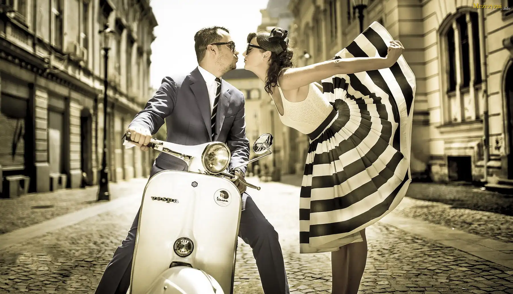 Ulica, Skuter, Vintage, Dziewczyna, Chłopak