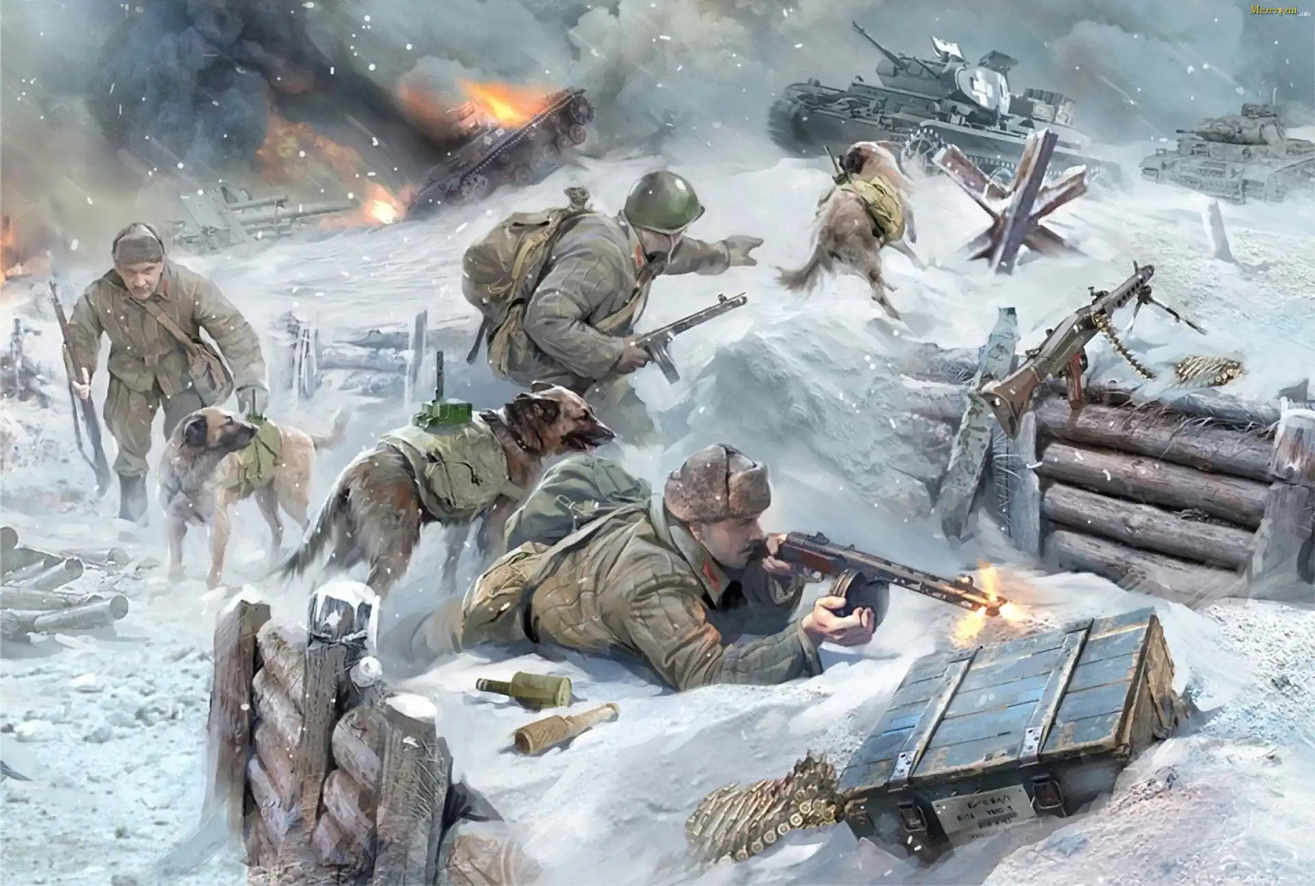 Żołnierze, Czołgi, Broń, Walka, Ogień