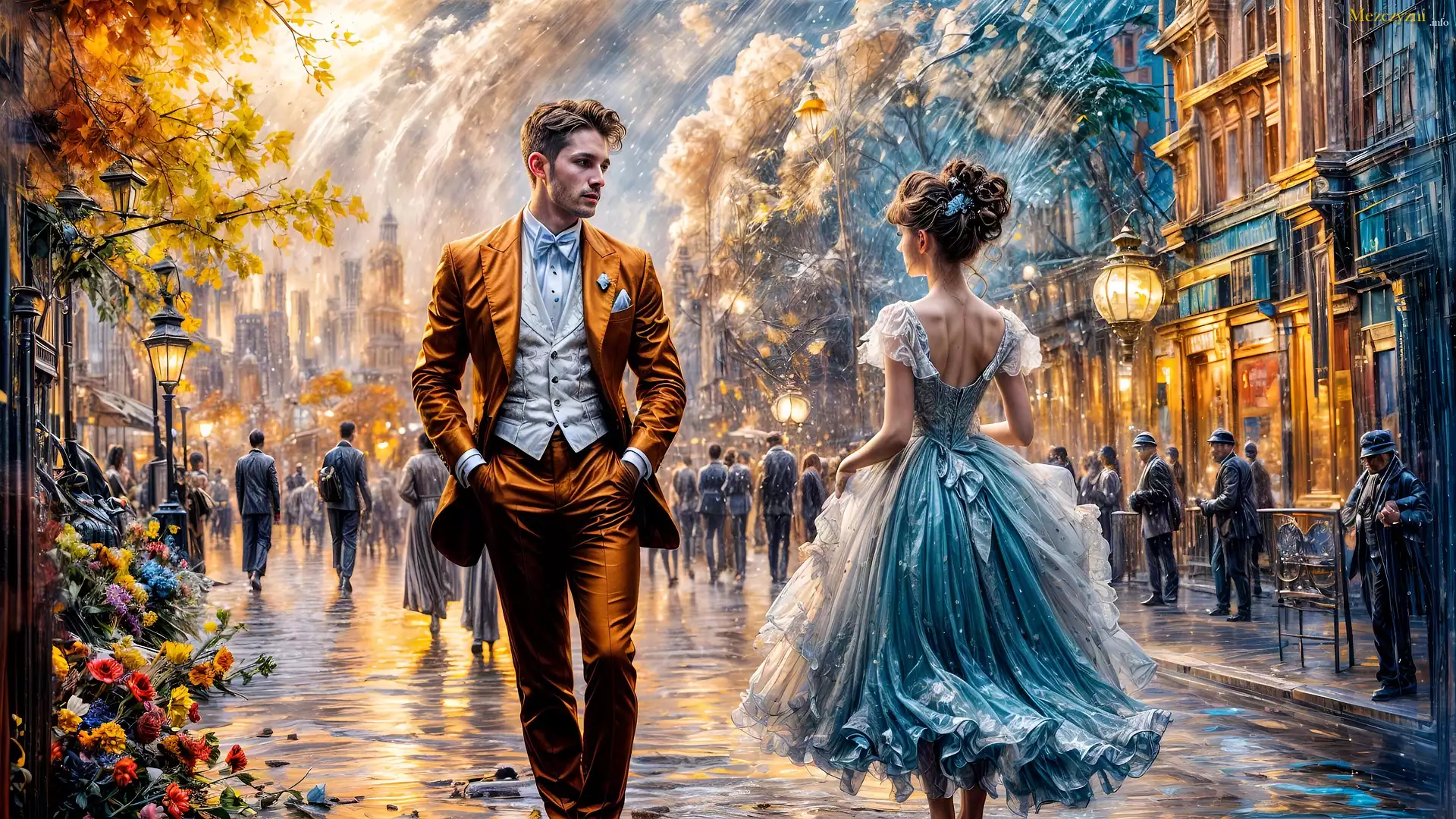 Mężczyzna, Kobieta, Ulica, Wieczór Reprodukcja obrazu