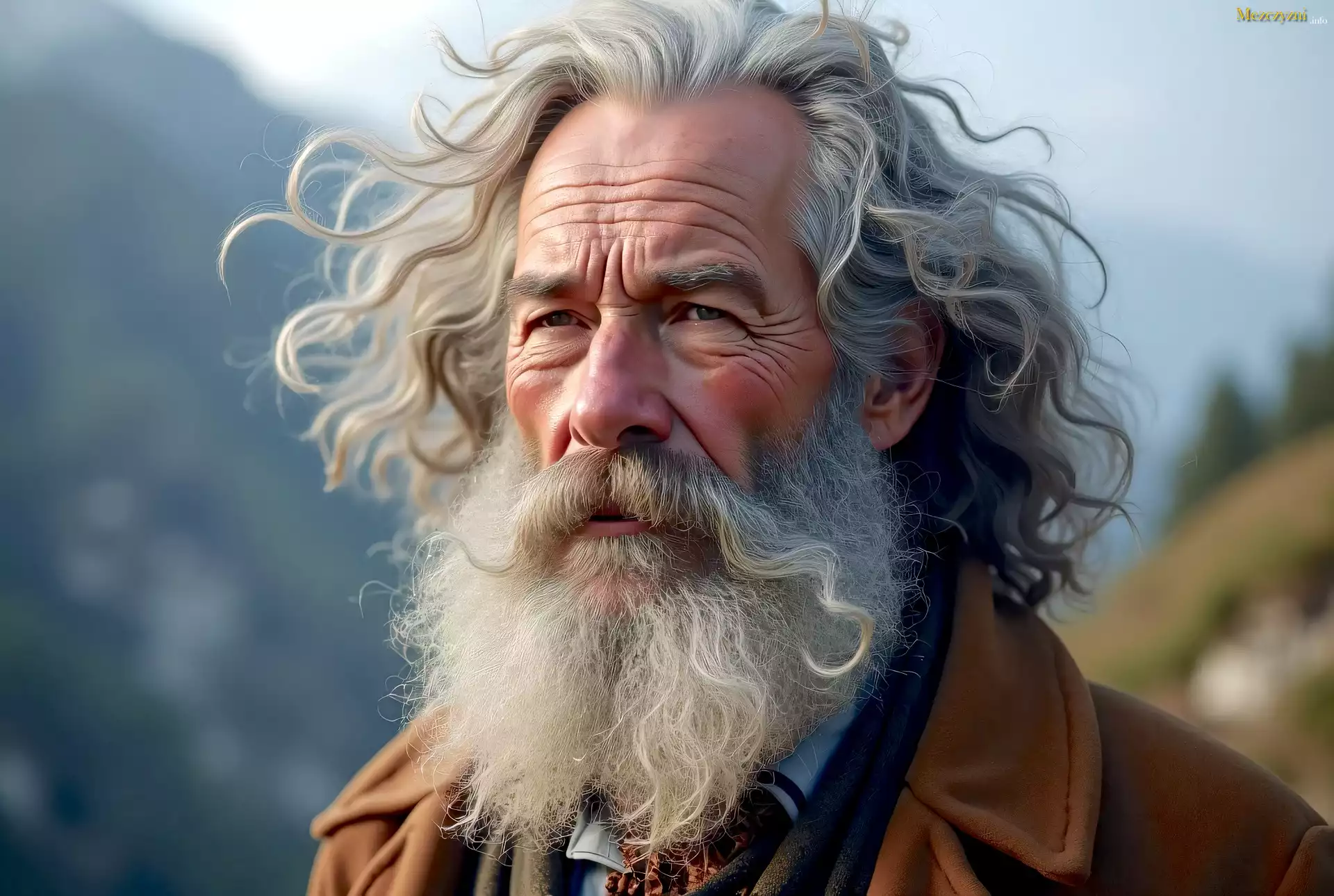 Mężczyzna, Siwy, Długi, Włosy, Wąsy, Broda