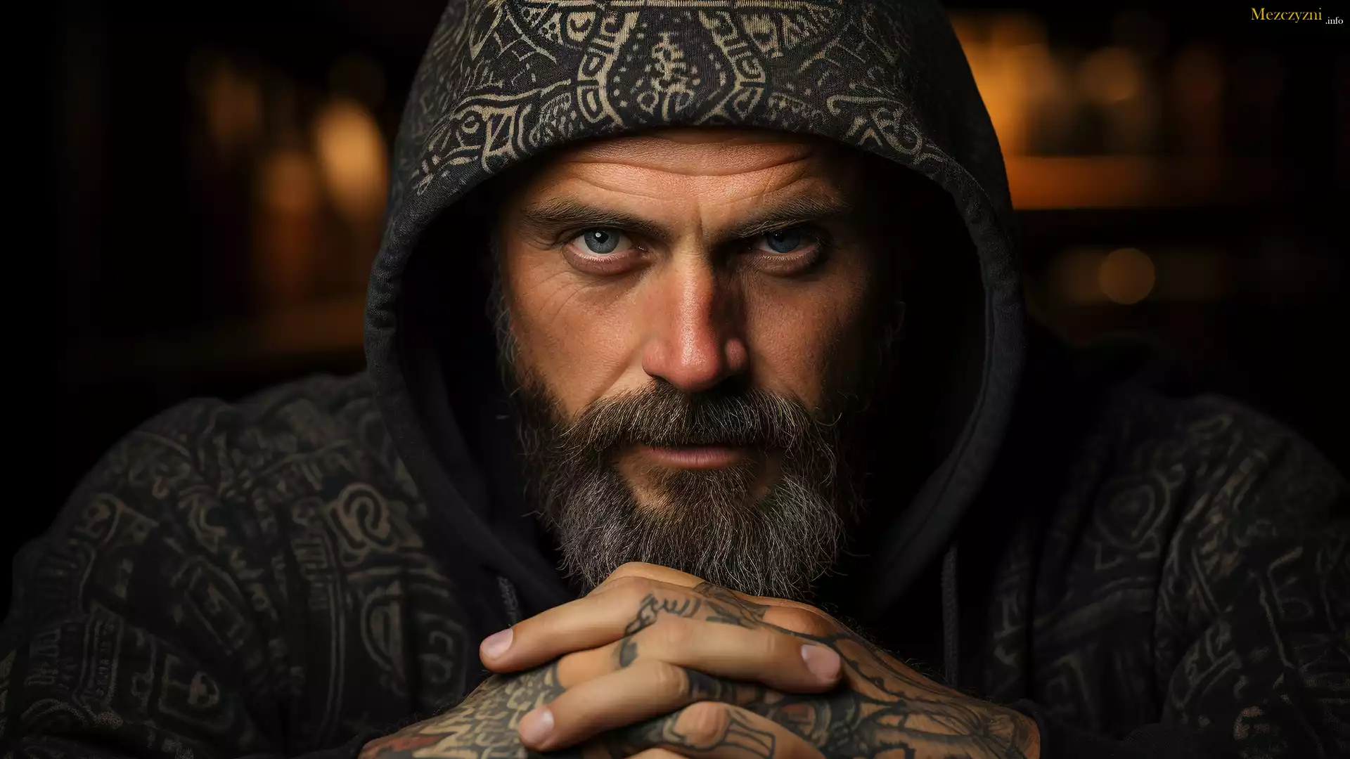 Mężczyzna, Zarost, Kaptur, Dłonie, Tatuaż