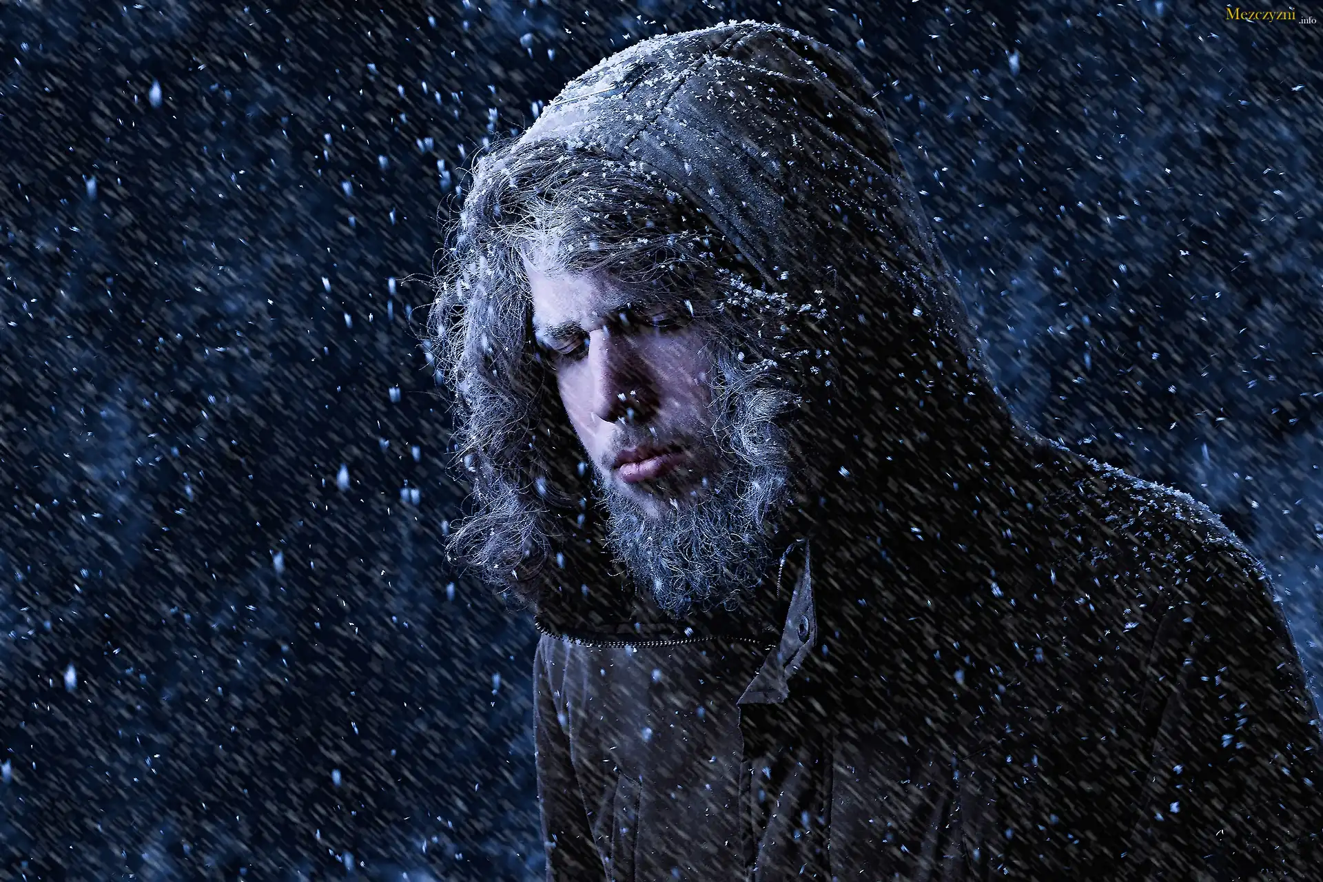 Zima, Śnieg, Mężczyzna, Broda, Kaptur