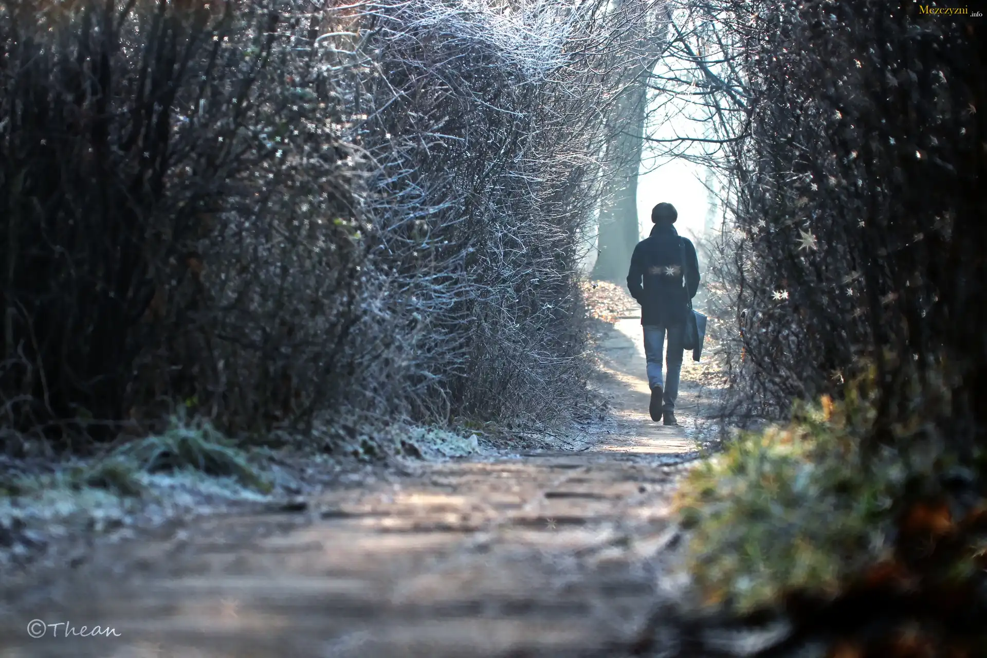 Zima, Dróżka, Młody, Mężczyzna