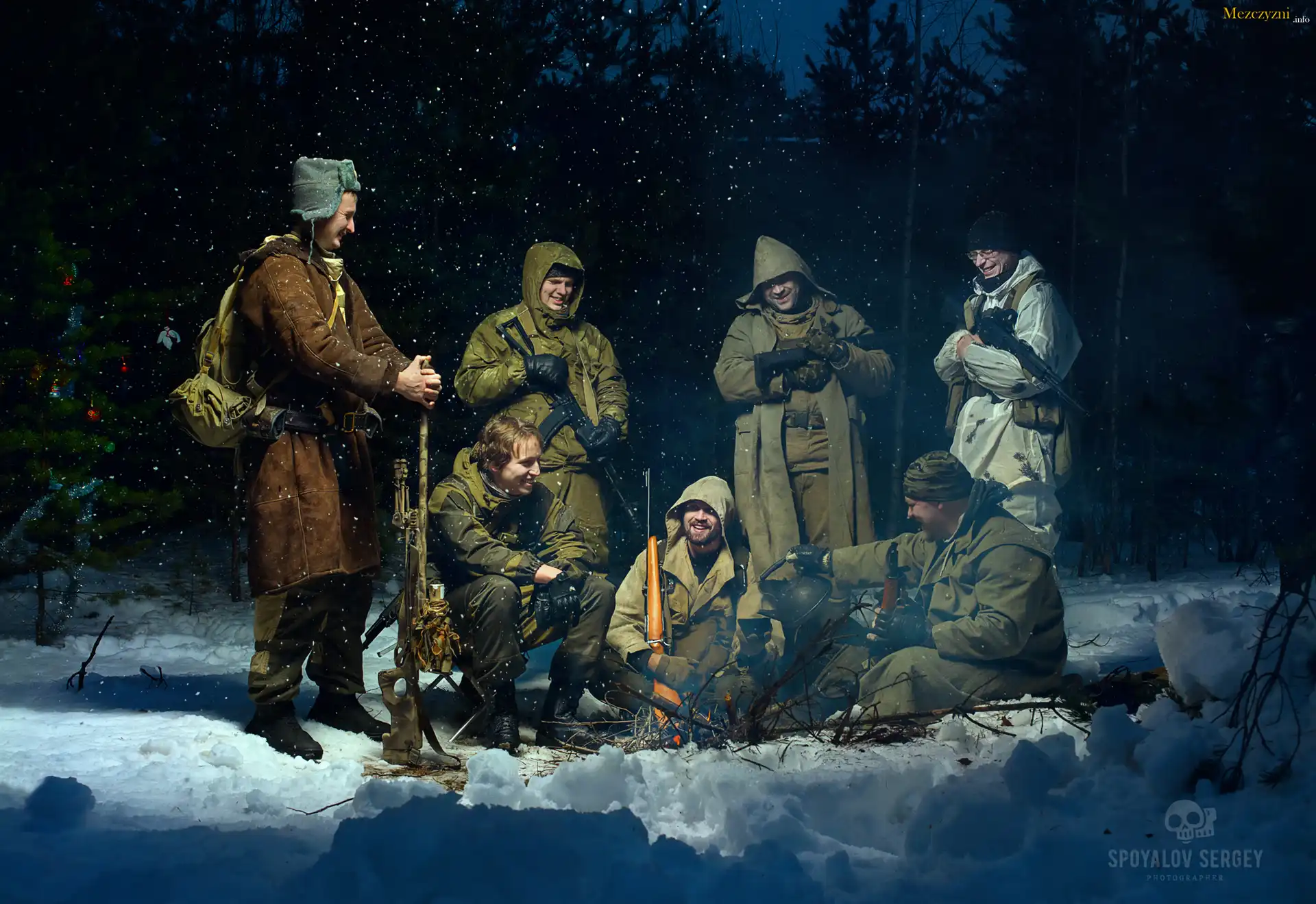 Zima, Śnieg, Las, Żołnierze, Ognisko